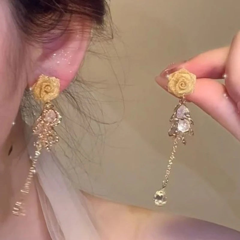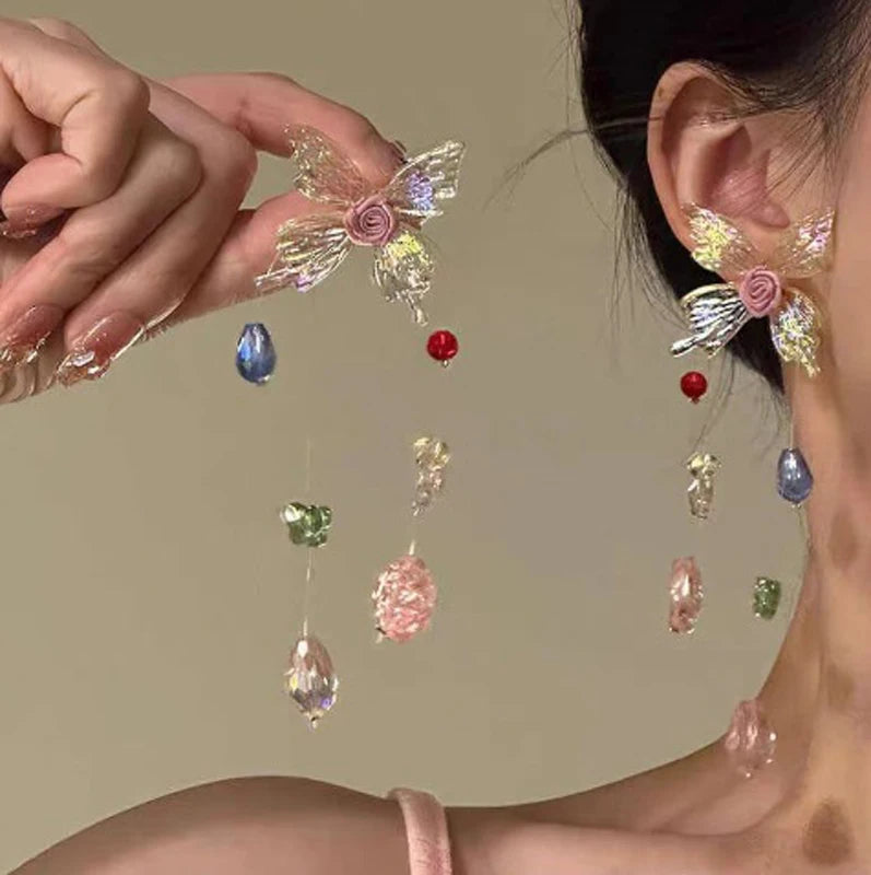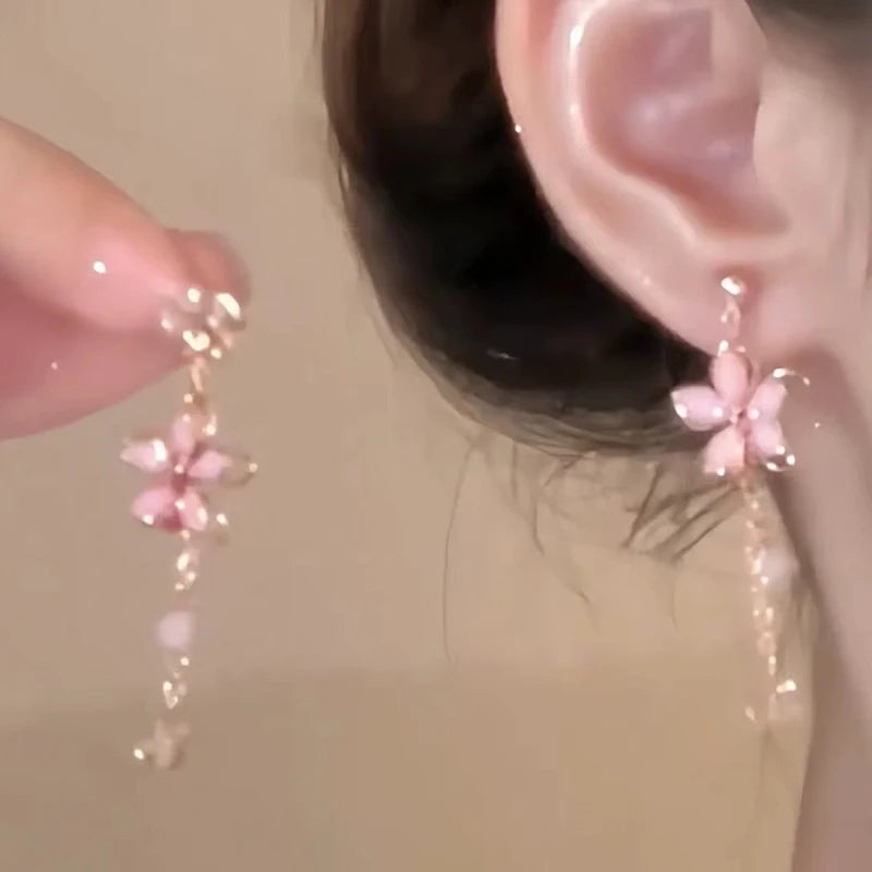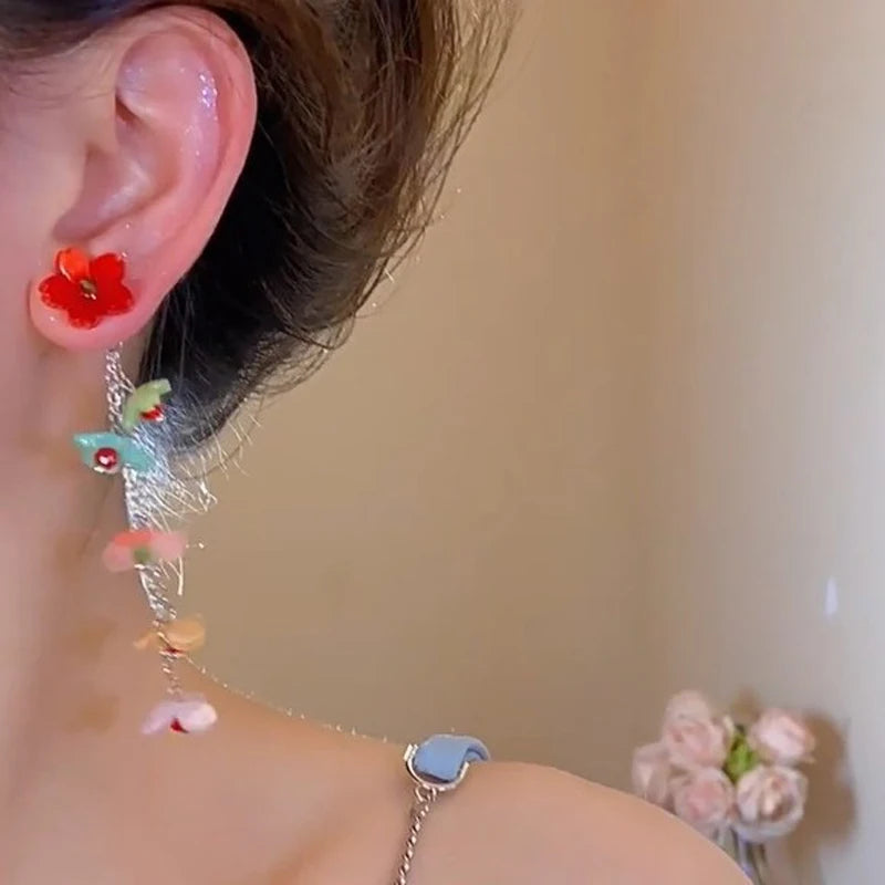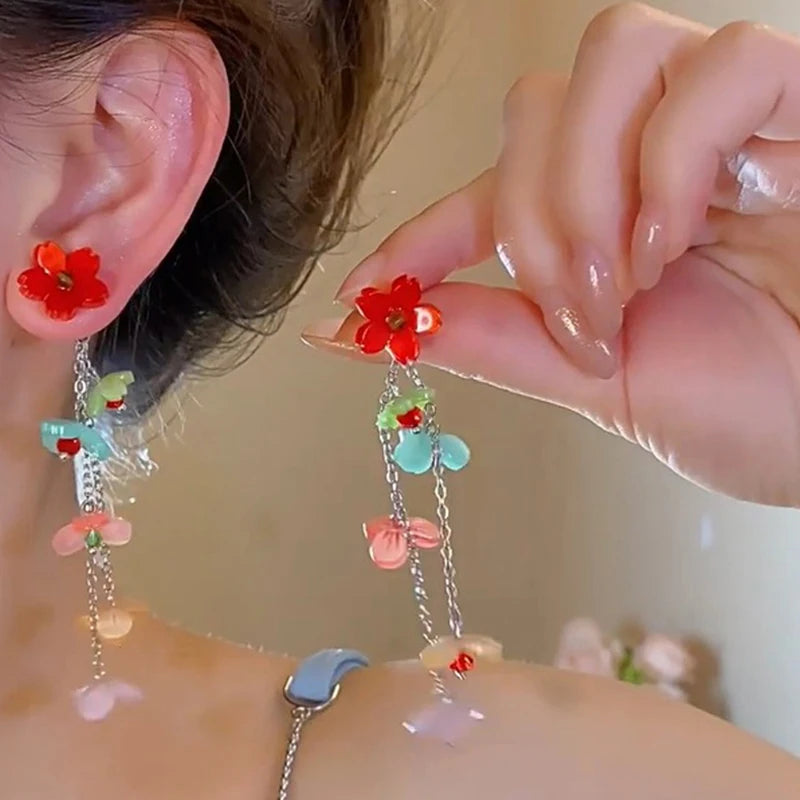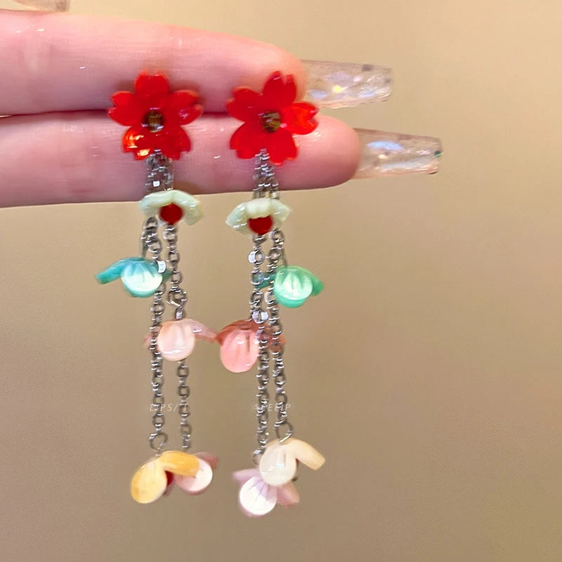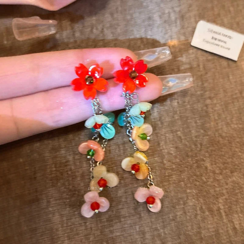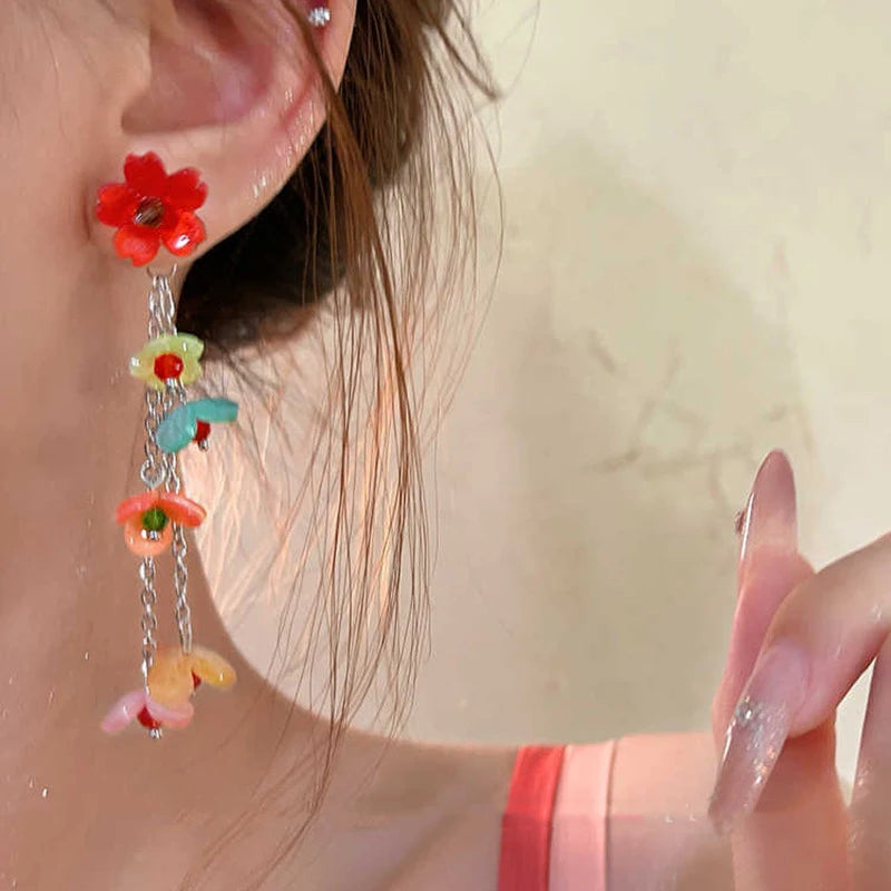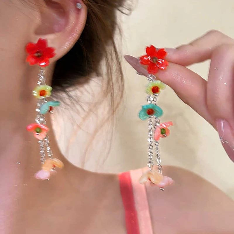 Korean Colorful Flower Tassel Pendant Earrings for Women Exaggerated Resin Long Floral Beaded Statement Earrings Jewelry Gifts