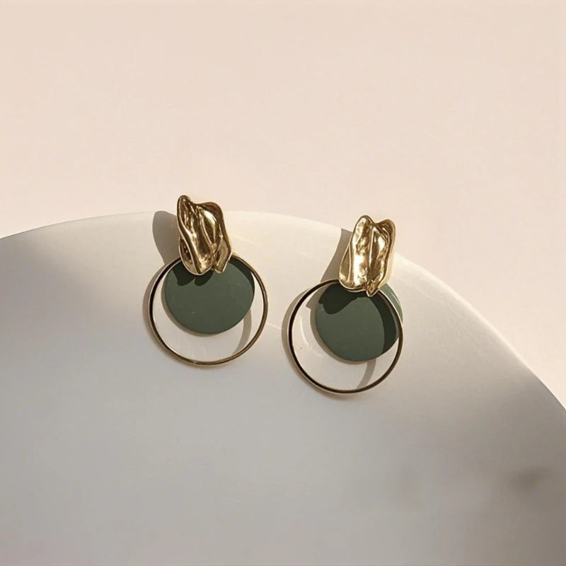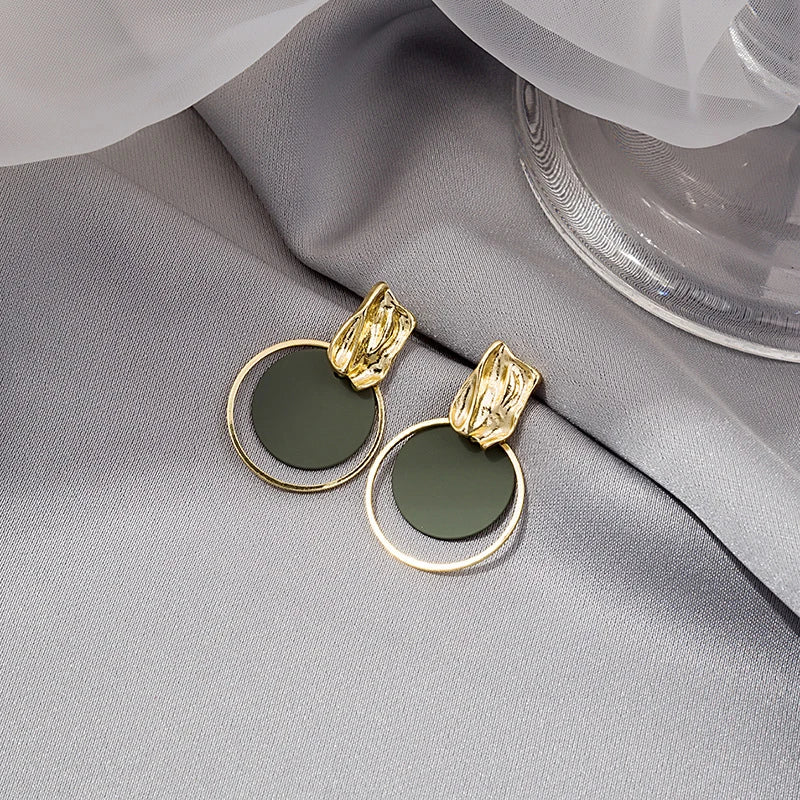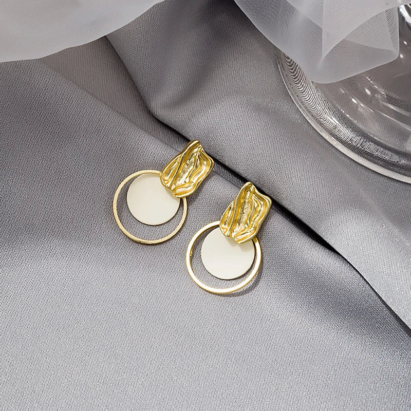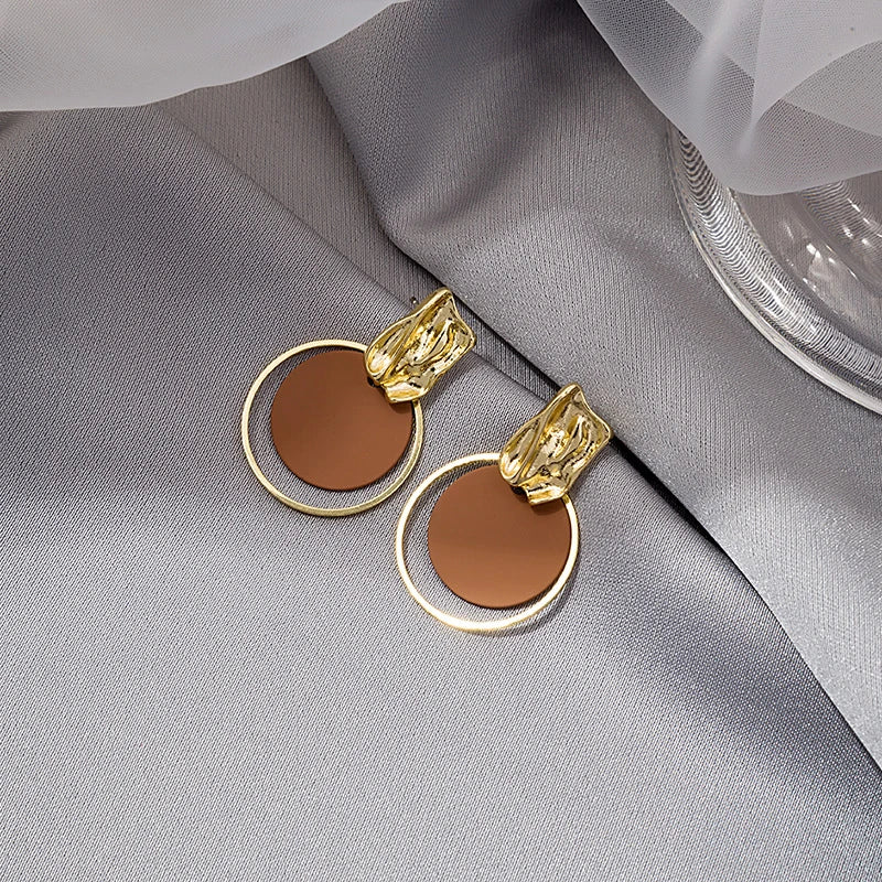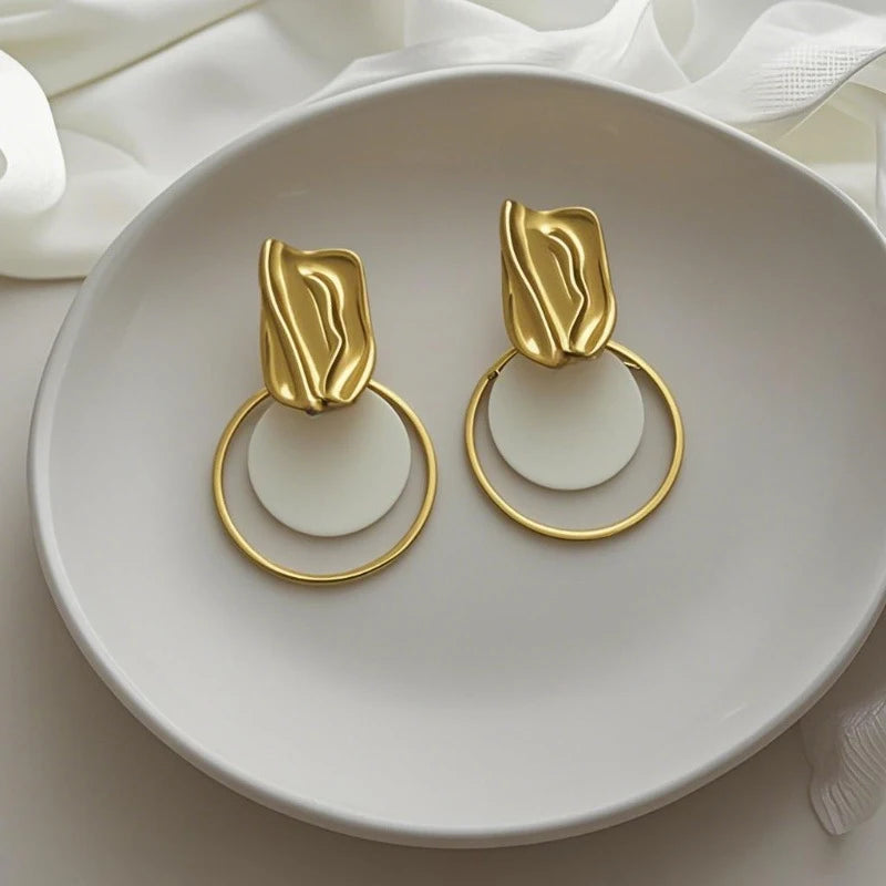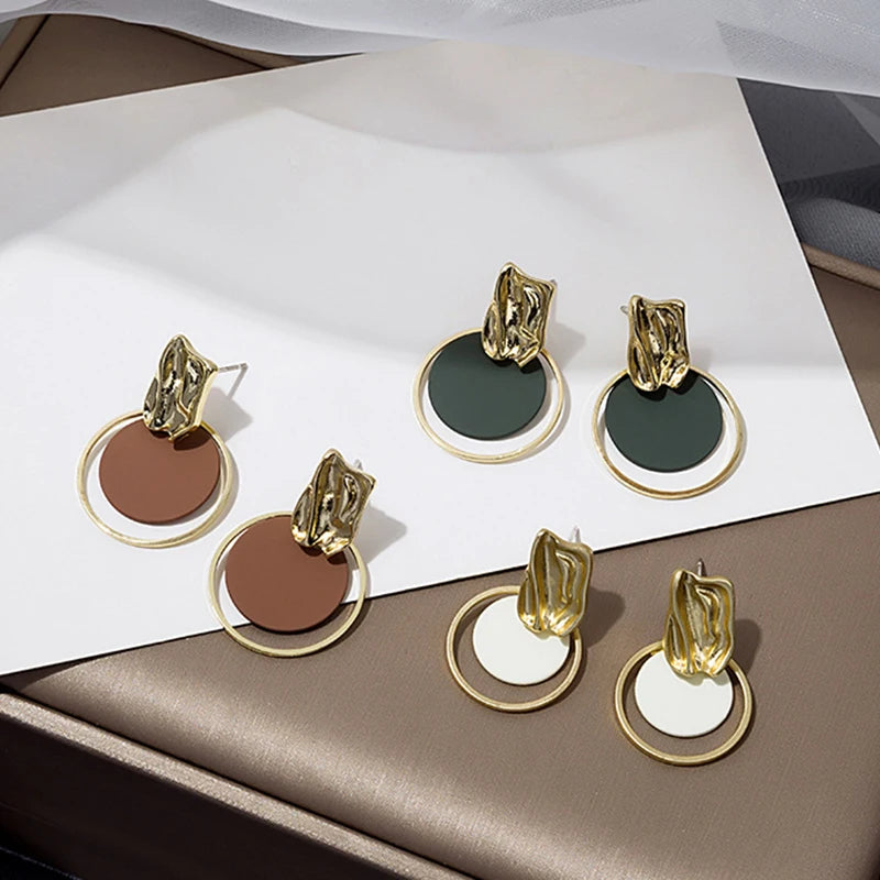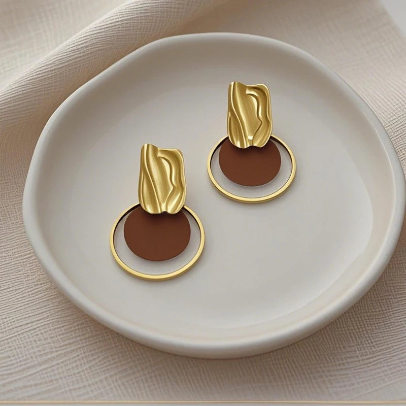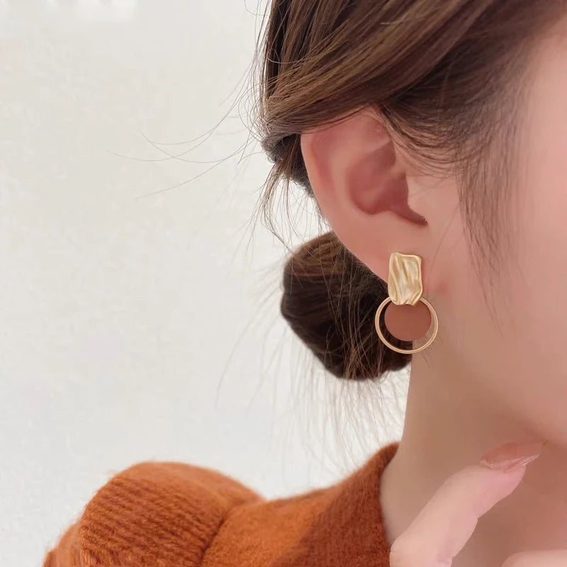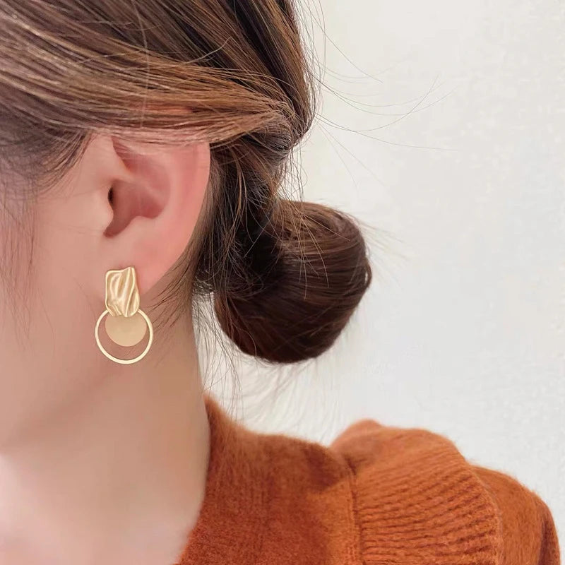 Korean Contrasting Round Metal Circle Earrings for Women Elegant Gold Color Irregular Stud Earrings Fashion Party Date Jewelry