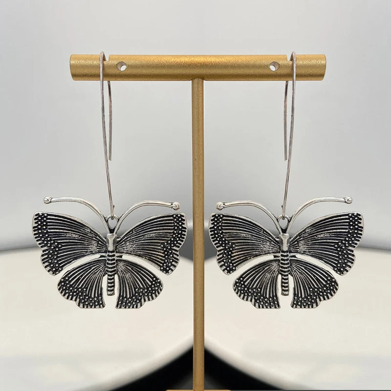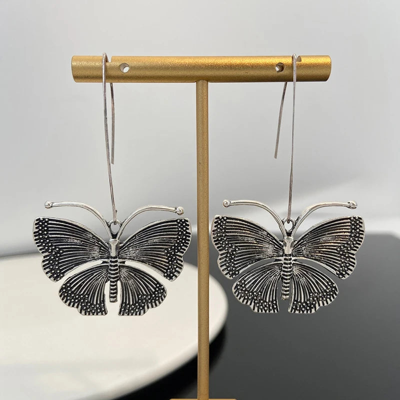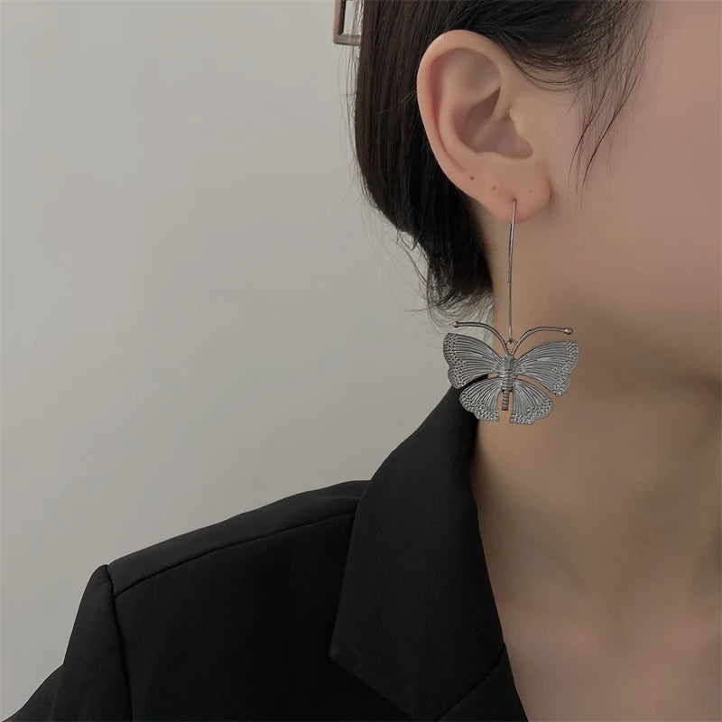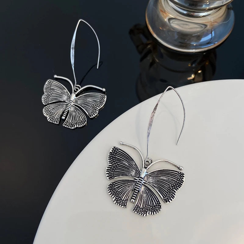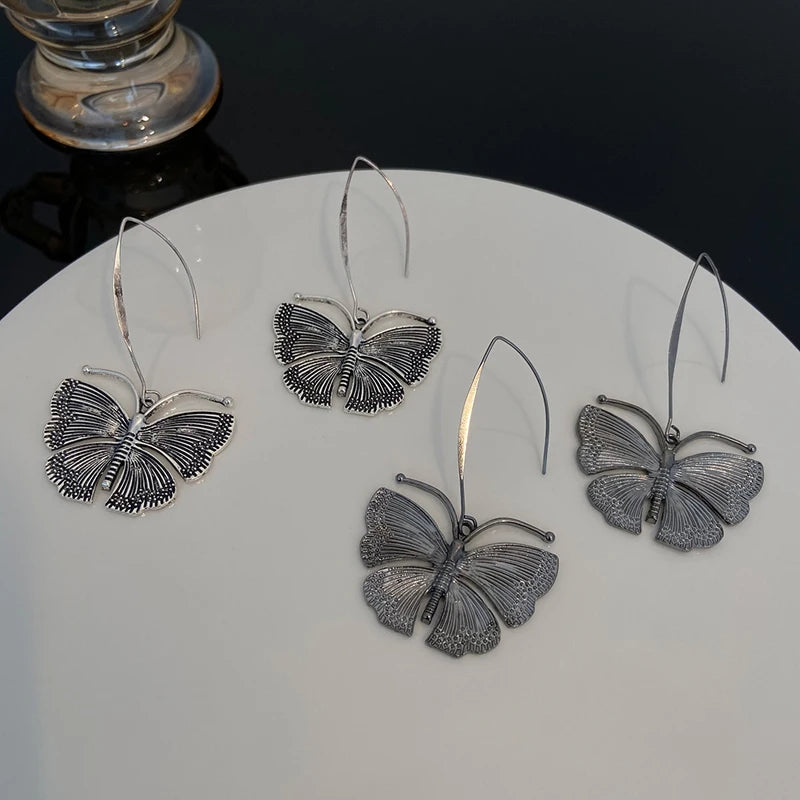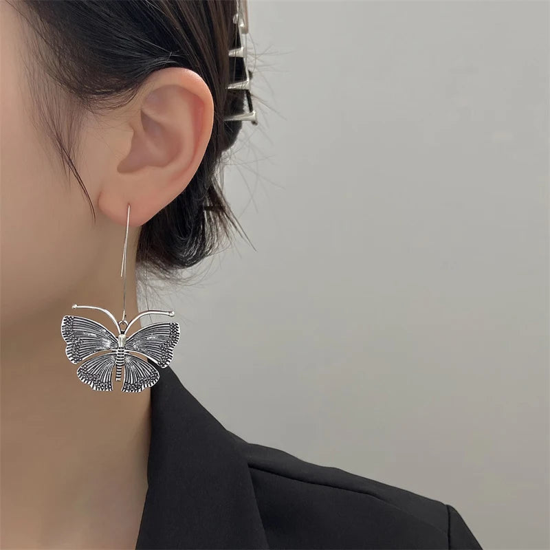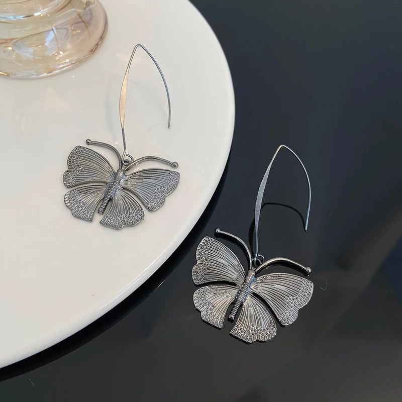 Vintage Metal Butterfly Pendant Earrings for Women Y2K Exaggerated Insect Ear Hook Earrings Fashion Personalized Party Jewelry