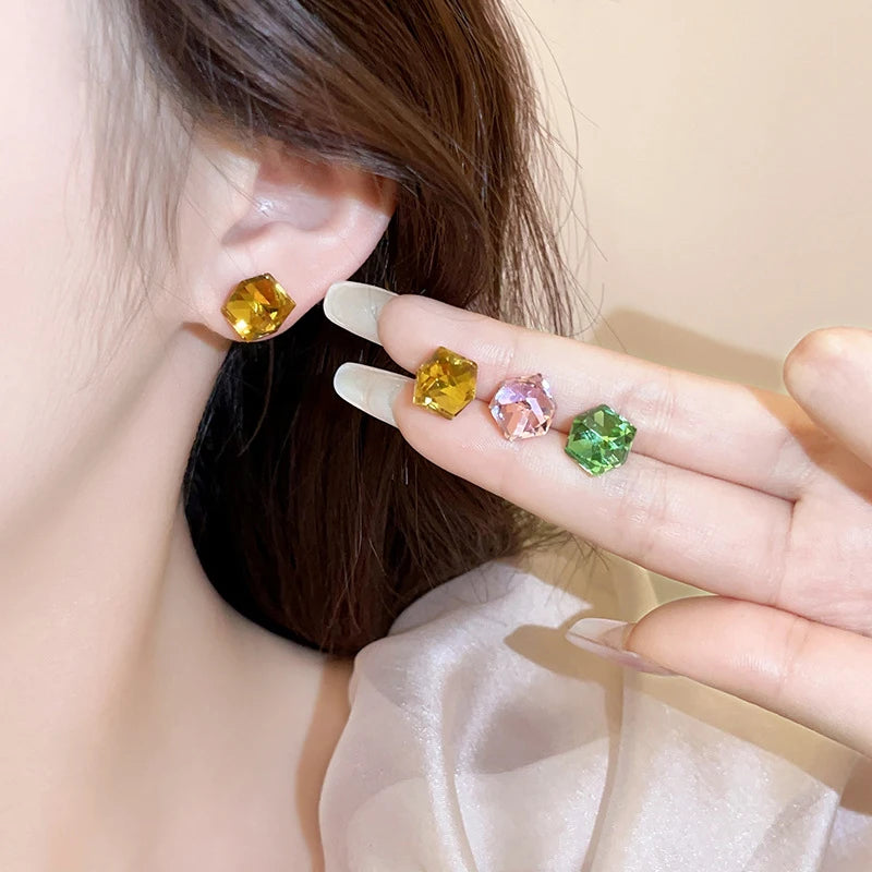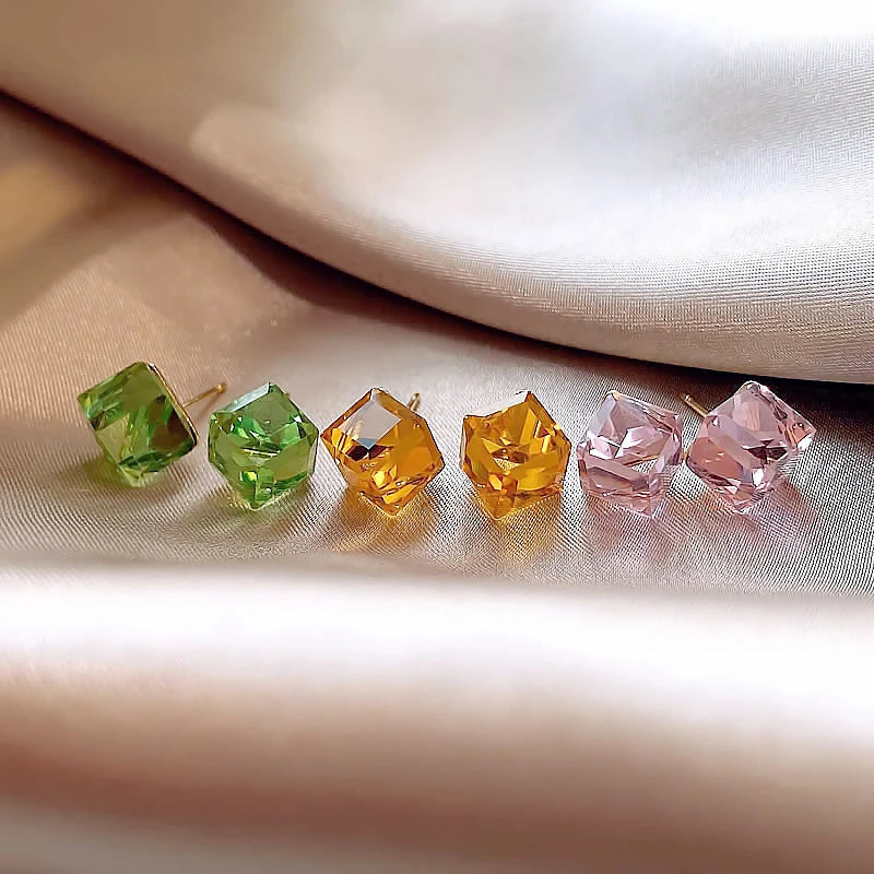 2025 New Colorful Crystal Three-Dimensional Stud Earrings for Women Sweet Transparent Jelly Stud Earrings Fashion Party Jewelry